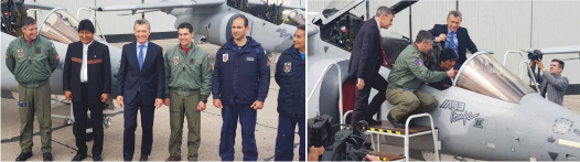 Los presidentes de Argentina y Bolivia, Mauricio Macri y Evo Morales, respectivamente, se reunieron en Buenos Aires para intentar concretar diversos acuerdos comerciales, con una agenda que incluyó la discusión de temas como energía, defensa, integración y tecnología. Sin embargo, hubo un tema que acaparó la mayor atención en general, y fue el ofrecimiento de Mauricio Macri a Evo Morales, para hacerle entrega de aviones militares. Dentro de esa jornada, los dos jefes de Estado visitaron las instalaciones del aeropuerto ubicado en el partido de Morón, en la localidad de El Palomar, en donde el Presidente Boliviano contó con la posibilidad de apreciar e inspeccionar los aviones que estarían dentro de la negociación, y por eso, se subió a la cabina de la aeronave y se enteró de sus características, informado por el propio Presidente Argentino. Se trata de la nave IA 63 'Pampa III, que es de última tecnología ya que cuenta con una cabina a presión con asientos eyectables en caso de emergencia, como a su vez de un radar, tanques externos de combustibles, entre otras características. Al mismo tiempo, cuenta con una amplia gama de armas como un cañón de 30 milímetros, bombas MK 81, lanzador de cohetes, cohetes de 68 milímetros, entre otros. Sus características, se completan así : mide casi 11 metros de largo y 3,3 de ancho, alcanza una velocidad máxima de 870 kilómetros por hora y una velocidad crucero de 650 kilómetros por hora. La reunión bilateral tenía el fin de abordar la marcha del contrato por el cual Argentina compra gas a Bolivia y la reciente modificación del acuerdo por el cual Argentina puede adecuar la compra a su estacionalidad para recibir más fluido en los meses de mayor demanda.